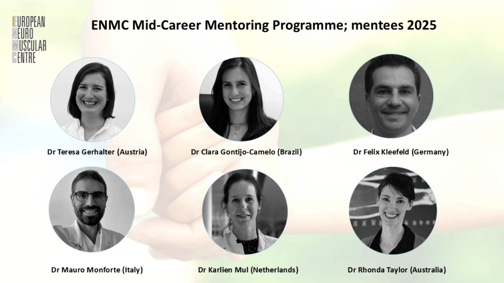 In the fifth call for the ENMC Mid-Career Mentoring Programme with the deadline July 2025, we received eight applications! Following interviews with each of the candidates, the ENMC Mentoring Programme Committee presented their recommendations to the Research- and Executive Committees. We are very happy to announce that six mentee candidates were selected for the programme: